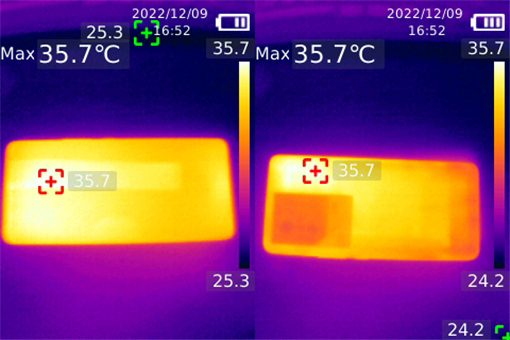 溫度方面,手機(jī)正面最高溫度僅有35.7攝氏度,機(jī)身背面同樣是35.7攝氏度,雙手握持手機(jī)并沒有因過熱而帶來刺激感。