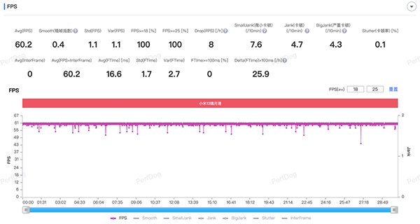 這里我用的是原神最高畫質(zhì)下的跑圖(璃月港)作為參考,它半小時平均幀率達到了60.2fps,功耗為5.3W,游戲表現(xiàn)是非常流暢,沒有任何問題。