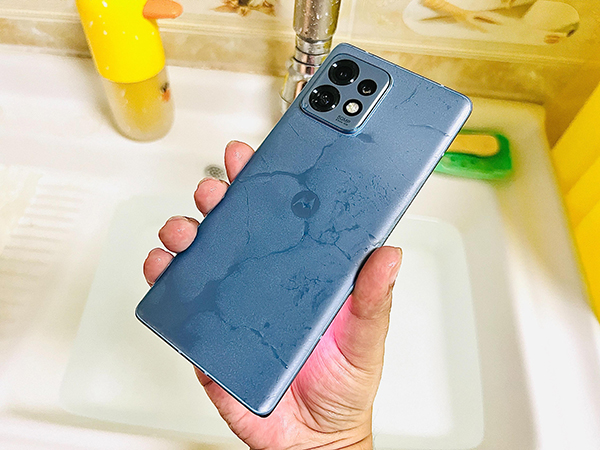 除了主動(dòng)拓展更豐富的水下使用場景,我們認(rèn)為被動(dòng)防護(hù)作用同樣十分重要,至少不用擔(dān)心因?yàn)榇蚍槐蚴且槐Х榷鴪?bào)廢掉一部手機(jī)的慘劇發(fā)生;此外,在水池旁、浴室中,也可以更大膽地拿起moto X40進(jìn)行可以常規(guī)操作;即便不戴保護(hù)殼長時(shí)間放置于空氣環(huán)境下,機(jī)身也能做到幾乎一塵不染。我們將moto X40從水池中拿出,甚至無需擦拭就可以繼續(xù)正常使用。