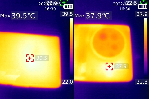 溫度的方面,機(jī)身正面最高溫度僅有35.8攝氏度,機(jī)身背面最高溫度更是低至34.9攝氏度。