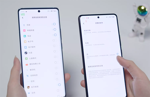 而iQOO 11這次直接標(biāo)配了三星E6材質(zhì)的2K分辨率144Hz高刷直屏,支持LTPO4.0自適應(yīng)刷新率,根據(jù)應(yīng)用場景動態(tài)調(diào)節(jié)刷新率,看圖片的時候最低可到1Hz,理論上更省電,兩款手機(jī)都可以針對不同的APP自定義開啟高刷,自己常用的APP不會鎖 幀,這一點還是挺方便的。