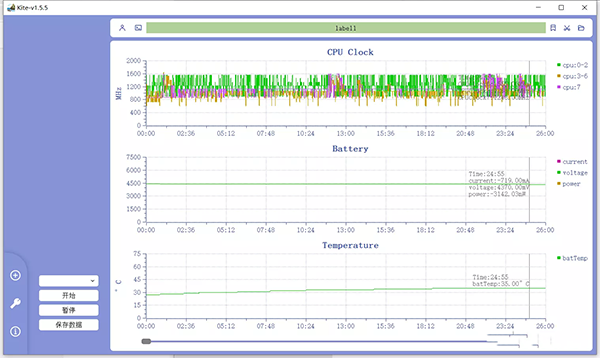從游戲溫度曲線圖可以看出,大循環(huán)立體散熱系統(tǒng)2.0的表現(xiàn)還是很給力的,在24.3℃的室內(nèi)開黑吃雞,手機(jī)后背最高溫度也僅為35.2℃,也就是微溫的感覺。