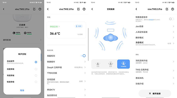 vivo TWS 3 Pro還提供了比較實用的功能,比如體溫監(jiān)測、音頻空間以及錄音模式功能。值得一提的是體溫檢測這項功能在在一些特殊的時候,還是比較實用的,而且vivo TWS 3 Pro的體溫檢測是在戴上耳機幾分鐘后就有檢測結(jié)果,后續(xù)如果一直戴著耳機,還想再檢測體溫也可以實現(xiàn)秒出結(jié)果。