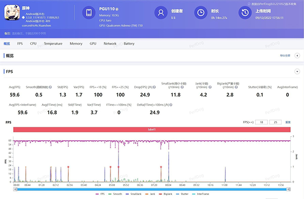 在《原神》的測(cè)試中,我們將畫(huà)質(zhì)調(diào)整為極高+60幀模式,15分鐘的游戲中,OPPO Find N2游戲全程平均幀率59.6幀。幀率曲線還是相當(dāng)平整的,基本沒(méi)有出現(xiàn)卡頓、掉幀的情況。