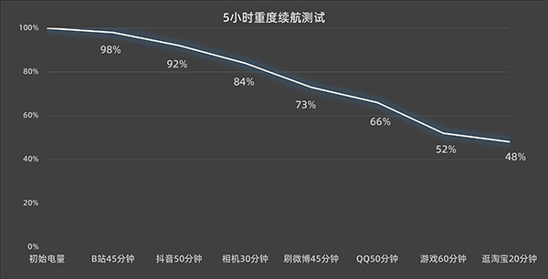 首先是續(xù)航測(cè)試,我們采用5小時(shí)重度續(xù)航測(cè)試模型來(lái)測(cè)試OPPO Find N2 內(nèi)屏的續(xù)航表現(xiàn):
