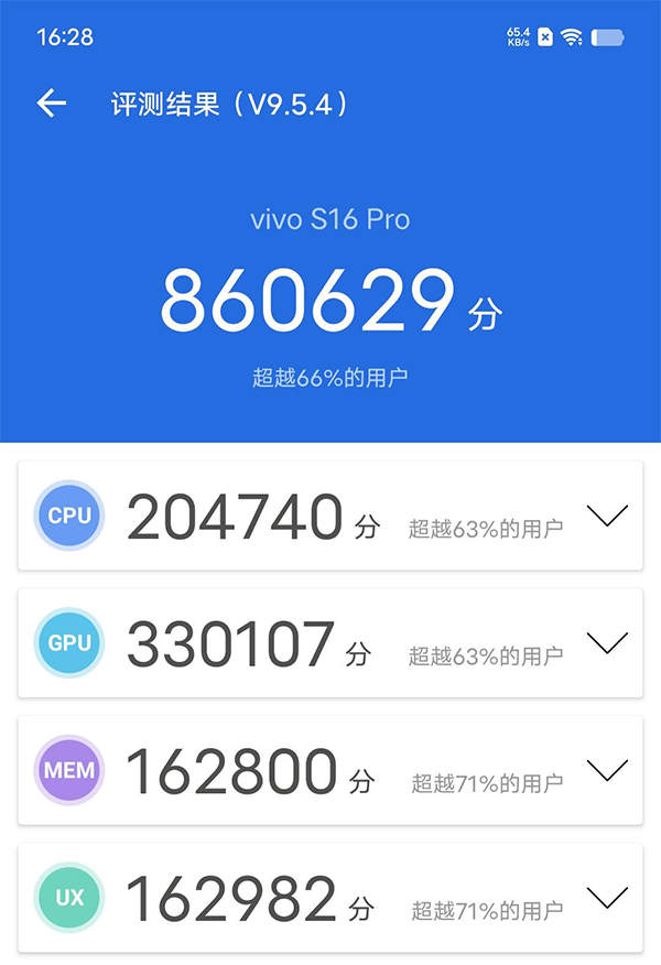 此外,在跑分方面,搭載天璣8200處理器的vivo S16 Pro安兔兔跑分成績(jī)能達(dá)到86萬分,相比前代產(chǎn)品高出不少。