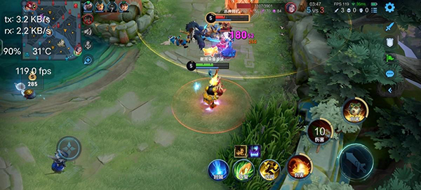 在體驗(yàn)王者時(shí),在BOOST模式下,手機(jī)的幀率基本上穩(wěn)定在119-120FPS之間,整體畫面流暢,溫度也控制在31°,沒有過熱的跡象,看來對(duì)于運(yùn)行MOBA類手游來說,vivo S16 Pro完全沒有壓力。