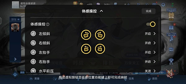 值得一提的是,如果想玩游戲更具沉浸感,還可以打開游戲魔盒中的體感操控,其利用陀螺儀和傳感器等芯片特性將體式操控帶入游戲中,豐富玩家在游戲中的操作緯度。
