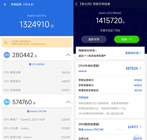 從結(jié)果來(lái)看,Redmi K60 Pro相比搭載上一代驍龍8 Gen 1的產(chǎn)品,跑分高出了30%以上,符合我們對(duì)于SoC算力提升的預(yù)期,也可以滿足游戲玩家對(duì)于一臺(tái)值得換的手機(jī)的要求。