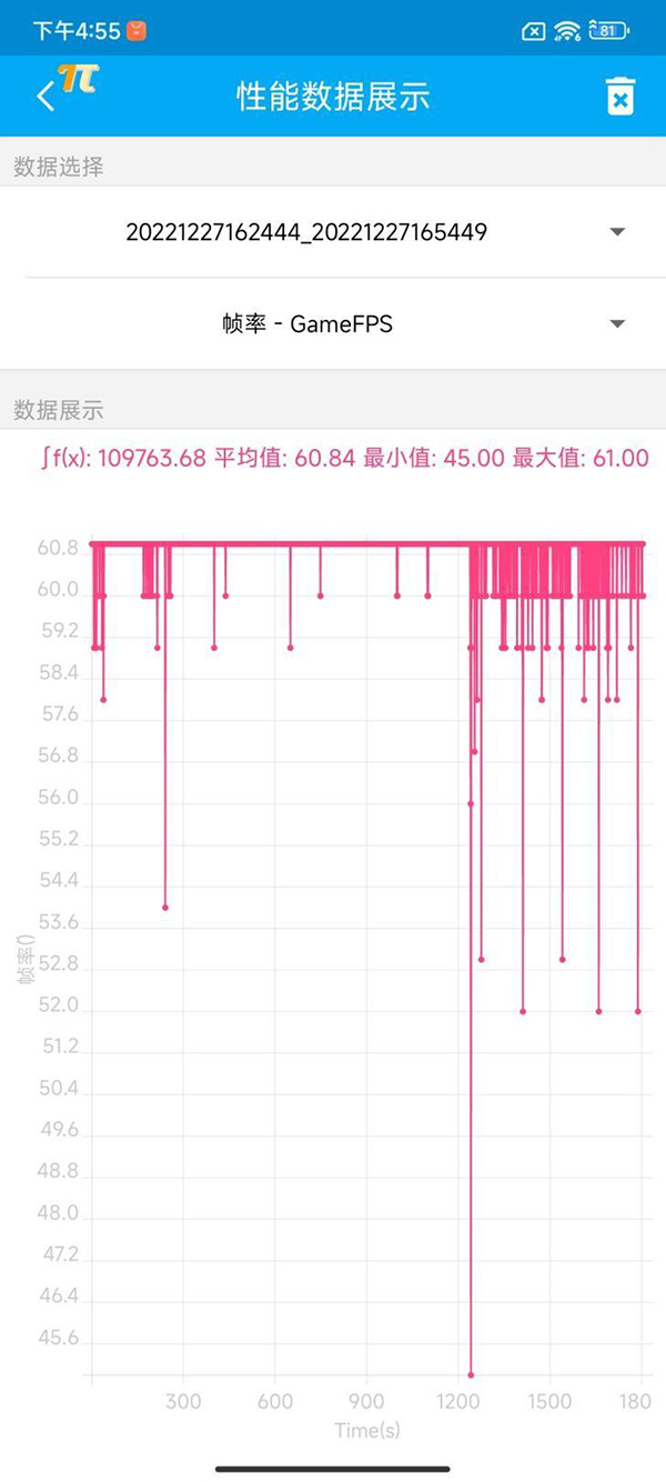 半個(gè)小時(shí)的幀率表現(xiàn)比較出色,全程只有1次掉幀到50fps以下,幀率有明顯波動(dòng)的次數(shù)屈指可數(shù),幾乎可以認(rèn)為是全程保持滿幀運(yùn)行。全程屏幕也沒(méi)有降亮度,整體觀感良好,游戲體驗(yàn)非常舒適。