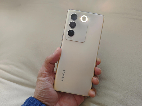 從vivo S16的后置相機云階區(qū)域你可以看到一個白色的圓環(huán),沒錯,這就是S16獨創(chuàng)的原彩柔光環(huán),它有別于普通手機生硬的閃光燈,納米級的柔光工藝加持,在你拍攝人像時,能起到更柔和的光線補光,色彩還原度更高,人臉的面部表情也更為自然白皙。