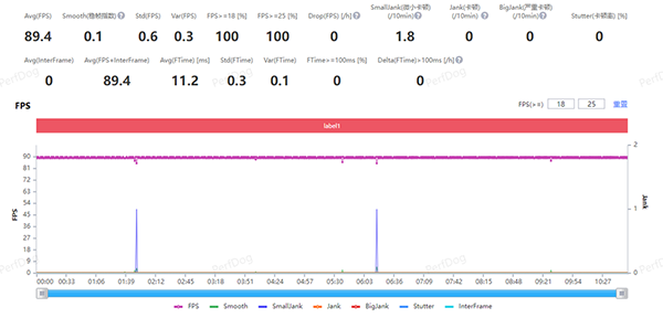《王者榮耀》在超高幀率、超高分辨率以及高清畫質(zhì)的設(shè)定下,平均幀率可以達(dá)到89.4FPS,游戲過程非常的穩(wěn)定。