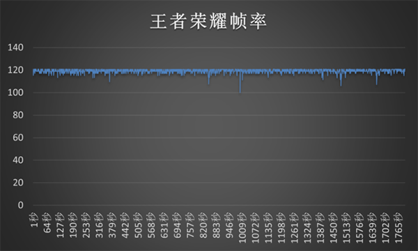 對于游戲體驗,不能光看參數(shù)與跑分,還是要針對游戲進(jìn)行高強(qiáng)度測試,在30分鐘【王者榮耀】并開啟最高畫質(zhì),特效全開模式下,平均幀數(shù)為120,整個幀率表現(xiàn)幾乎為一條直線,游戲過程也非常絲滑。