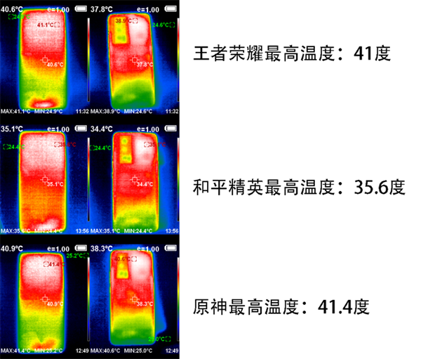 還是那句話,在散熱表現(xiàn)上我們不能單單只看參數(shù),具體表現(xiàn)才是重中之重。在分別對【王者榮耀】、【和平精英】、【原神】分別進(jìn)行了30分鐘的高強(qiáng)度測后,溫度分別為41度、35.6度和41.4度,溫度控制到位,在握持時也沒有燙手的感覺,通過溫度槍我們也可以看出Redmi K60 Pro機(jī)身的均熱版起到了非常重要的作用,成功的把熱量散布到了整部機(jī)身,再通過機(jī)身內(nèi)共分布的10個溫度傳感器來進(jìn)行精準(zhǔn)溫控,從而使用戶在多場景依舊能夠獲得更出色溫控體驗。