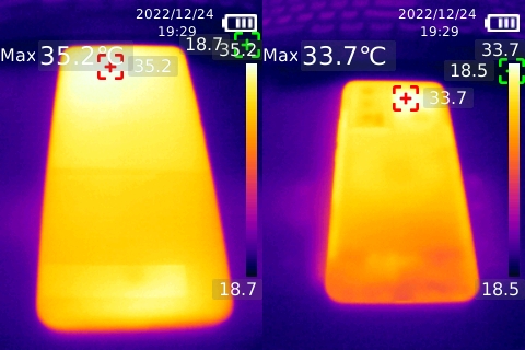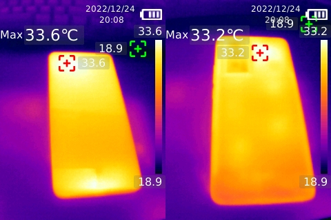 溫度方面,機(jī)身正面最高溫度33.6攝氏度,機(jī)身背面最高溫度33.2攝氏度,雙手握持沒有因過熱而帶來刺激感,而是僅有溫溫的感覺。