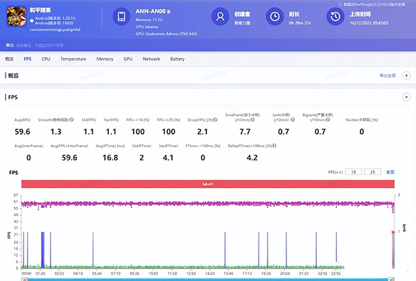 其次,日常喜歡玩射擊類游戲的手機(jī)用戶也不少,通過運(yùn)行和平精英這款射擊游戲,可以看到,流暢畫質(zhì)極限幀率的設(shè)置下半小時游戲的平均幀率可以達(dá)到59.6幀,流暢吃雞毫無壓力。這么看,榮耀80高幀率甚至滿幀率運(yùn)行主流手游是完全沒有問題的,如果小伙伴是喜歡玩《原神》之類的比較吃配置的手游玩家,降點(diǎn)畫質(zhì)高幀率流暢運(yùn)行應(yīng)該也不會有問題。