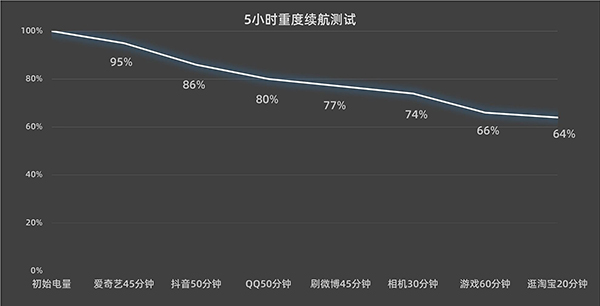 我們對這塊電池也進(jìn)行了相關(guān)的續(xù)航測試,采用在線5小時重度續(xù)航測試模型,在24℃室溫環(huán)境下,連接辦公室Wi-Fi,關(guān)閉藍(lán)牙、GPS,屏幕亮度、音量均設(shè)為50%。