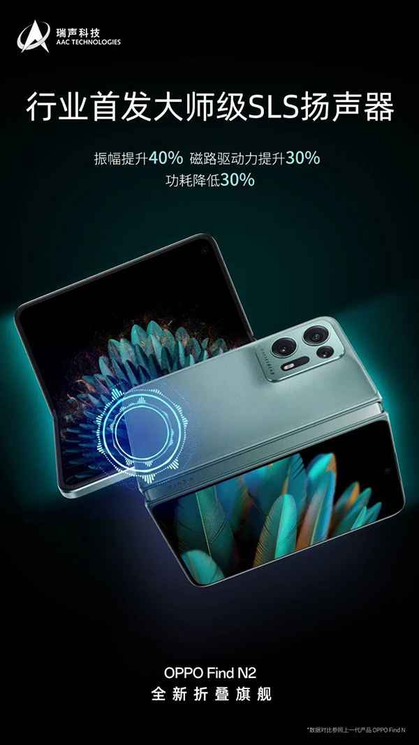 此外,這款大師級SLS揚聲器的體積相較經典級產品縮小50%,可以有效節(jié)省堆疊空間。FindN2的揚聲器振幅空間和后腔體積都增加了40%,磁路驅動力增加了30%,新一代音膜技術超窄折環(huán)讓輻射面積增加了15%,同時功耗也顯著降低了30%。