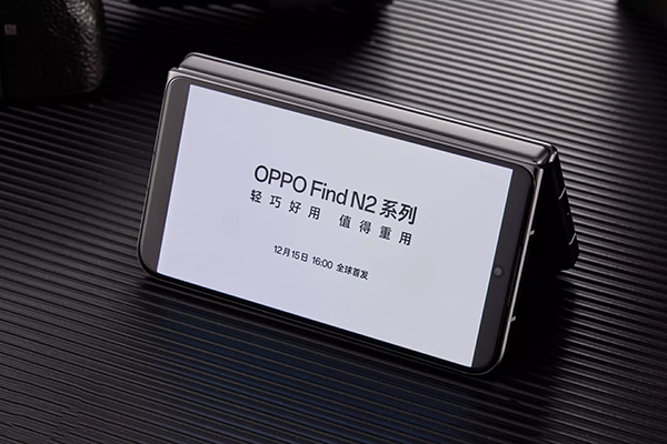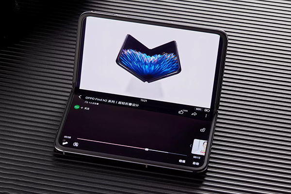 就和這個名字一樣,在亮屏解鎖狀態(tài)下時,將FindN2倒扣放置在桌面上,此時外屏朝外,呈現(xiàn)折疊開合角度在10°~120°之間的“帳篷”狀態(tài),畫面和操作會鎖定在外屏上。