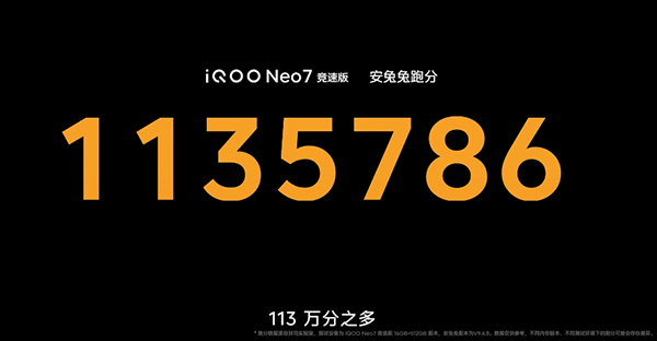 搭載了驍龍8+處理器的iQOO Neo7競速版,其安兔兔跑分為113萬分。