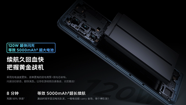 iQOO Neo7競速版搭載120W超快閃充,官方表示在極速充電模式下至快8分鐘即可將這塊等效5000mAh大電池充至50%電量,帶來更好的充電體驗以及更長的續(xù)航表現(xiàn)。