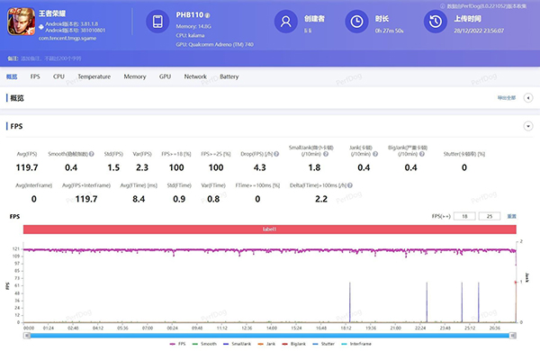 從測試結果來看,一加11的表現和我們預想中的基本一致。首先在《王者榮耀》和《和平精英》的測試中,一加11基本是可以一直處于滿幀狀態(tài)下運行,當然這對于搭載驍龍 8 Gen2的機型來說,并沒有什么壓力。