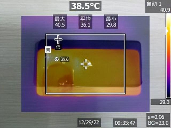我們也測試一加11在進行15分鐘《原神》測試后的機身背部的溫度情況,機身整體手感溫熱,溫度最高處位于機身背部的右上角,為40.5℃。