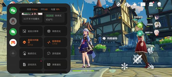 看名字就知道,前邊兩個都是改善游戲畫質(zhì)和視覺效果的。一般手游為了提升幀率,往往會降低渲染分辨率。而一加11基于獨立的渲染芯片,在打開超級分辨率后畫面肉眼可見的提升了清晰度。這一點在《原神》中尤為突出,激活這個功能后人物模型的線條馬上變得銳利分明。這個效果在《王者榮耀》、《和平精英》里面同樣有效。