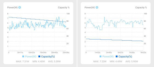 不過當(dāng)我想通過截圖放大,看看實際畫面細(xì)膩度的變化,發(fā)現(xiàn)截圖的畫面是沒有變化的。也就是我們看到一加11的游戲畫面變清晰了,是通過渲染芯片實時渲染出來的。那這個功耗會不會變高呢?通過同樣原神運行情況來看,這個渲染會增加功耗,但不多。大概就是比標(biāo)準(zhǔn)模式,多消耗了0.4W左右。