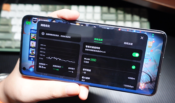 什么是游戲云計(jì)算專網(wǎng)?簡單來說,就是在網(wǎng)絡(luò)差的環(huán)境下,讓一加11依舊保持流暢,當(dāng)處于Wi-Fi網(wǎng)絡(luò)質(zhì)量差的情況下,一加11會(huì)啟動(dòng)蜂窩網(wǎng)絡(luò),同時(shí)發(fā)射Wi-Fi和蜂窩兩條通路。為了測試這項(xiàng)功能,我們找了一個(gè)信號相對較差的地方,很多手機(jī)開個(gè)網(wǎng)頁都在轉(zhuǎn)圈,而一加11還能照常打王者。