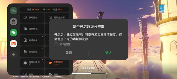 其次,一加11還提供了“超級分辨率”功能。開啟后,它會將游戲渲染分辨率提升到與屏幕相同的2K分辨率,明顯改善游戲畫面的紋理清晰度。