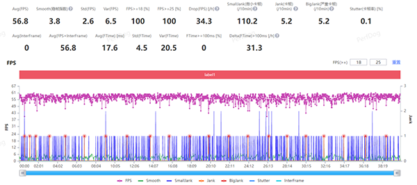 一加11還提供了一個(gè)“極限穩(wěn)幀”模式,在打開該模式下,我又在同樣的環(huán)境中重新進(jìn)行了一次40分鐘的須彌地圖跑圖。原本我以為游戲幀率會(huì)變得更穩(wěn),但是沒有想到最終游戲平均幀率55.8FPS,甚至不如未開啟極限穩(wěn)幀,期待后續(xù)系統(tǒng)更新優(yōu)化。但手機(jī)功耗相差不多,大約5.56W(2784.2mW*2)。