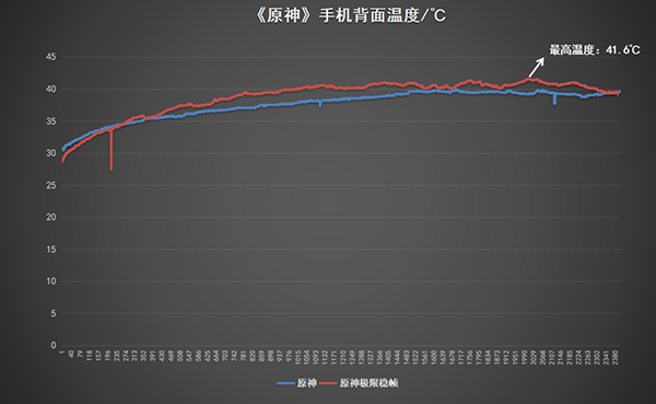 而一加11機(jī)身溫度上升更快,溫度也變得更高一些,最高溫度達(dá)到41.6℃。