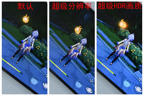 值得一提的是,一加11還提供了超級(jí)分辨率、超級(jí)HDR畫質(zhì)的游戲畫質(zhì)優(yōu)化,覆蓋了主流的游戲,包括《原神》、《王者榮耀》、《和平精英》等。開啟超級(jí)分辨率,會(huì)發(fā)現(xiàn)游戲畫質(zhì)的清晰度有所增加,細(xì)節(jié)銳度增加。而開啟超級(jí)HDR畫質(zhì),會(huì)激發(fā)屏幕HDR模式顯示,游戲畫面亮度變高,亮處更亮,明暗對(duì)比度增加。