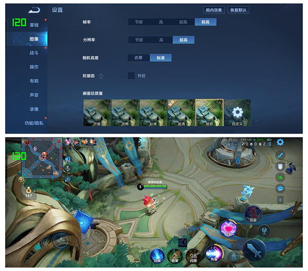 沒有想到的是,一加11在《王者榮耀》游戲中率先支持在開啟極高幀率、超高分辨率情況下,可以開啟極致畫質(zhì),以往手機(jī)在該模式下只能開啟高清畫質(zhì),進(jìn)入游戲畫面會(huì)比較明顯感覺到游戲畫質(zhì)更為清晰。