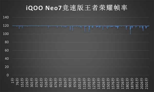 還是那句話,數(shù)據(jù)再好也要看游戲?qū)嶋H體驗,在30分鐘【王者榮耀】并開啟最高畫質(zhì)與極高幀率模式下,平均幀數(shù)119,畫面表現(xiàn)絲滑同時也沒有任何幀率波動,幾乎為一條直線。