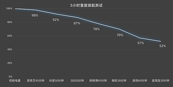 為了檢驗(yàn)iQOO Neo7競(jìng)速版的續(xù)航表現(xiàn),我們使用在線5小時(shí)重度續(xù)航測(cè)試模型,對(duì)其進(jìn)行續(xù)航測(cè)試: