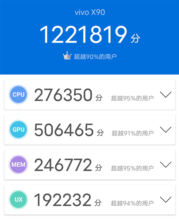 在安兔兔的跑分測試中,vivo X90可以跑出超過120萬分的成績,妥妥的旗艦梯隊(duì)表現(xiàn)水準(zhǔn)。