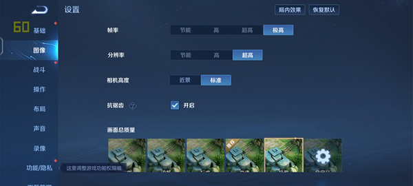 筆者首先測試了vivo X90在《王者榮耀》中的表現(xiàn),在這一款游戲中,vivo X90支持開啟到極致畫質(zhì)+極高(120幀)的游戲原生設(shè)置,并且在畫質(zhì)模式上具備有自適應(yīng)畫質(zhì)選項(xiàng)可選。