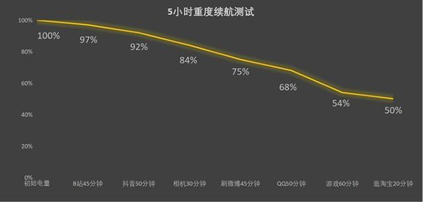 為了更直觀感受iQOO 11 Pro的續(xù)航表現(xiàn),筆者對其進行了5小時重度續(xù)航測試,在當前室溫環(huán)境下,連接辦公室Wi-Fi,關閉藍牙定位,屏幕亮度、音量均設為50%,其結(jié)果如下: