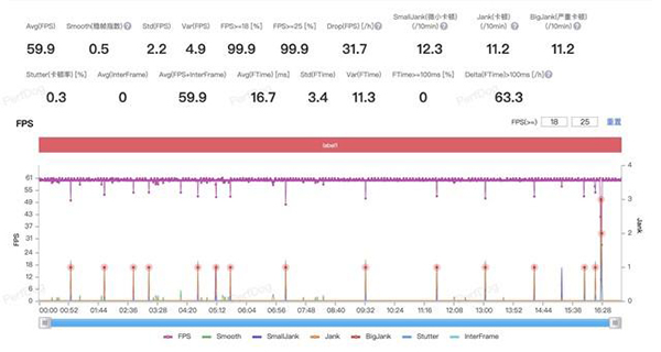 在開啟高畫質(zhì)+60幀的情況下,iQOO 11 Pro在20分鐘的《原神》游戲過程中,平均幀率達到了59.9fps,雖然在游戲過程中出現(xiàn)了小幅波動的情況,但整體表現(xiàn)還是較為穩(wěn)定的。