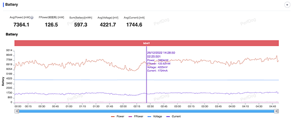 最后整機的功耗會來到恐怖的7.364W,這樣的功耗也是我們測試過的機型中刨除游戲手機外最高的,整體的性能釋放非常充足。
