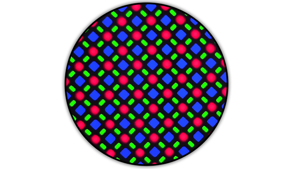 這是一塊6.78英寸的雙曲面OLED屏幕,1080p+的分辨率配合最高120Hz的顯示刷新率,面板來自京東方,用的是Q8基材,我們實(shí)驗(yàn)室顯微相機(jī)拍攝的子像素排列如下。