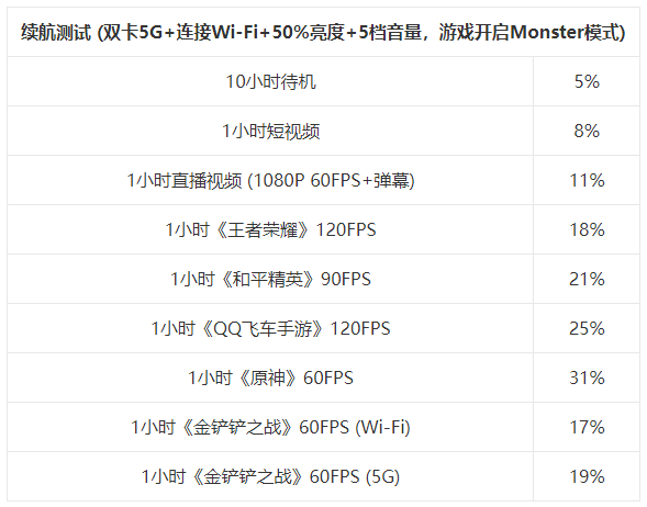 如果是使用5G網(wǎng)絡的話,筆者通過兩次1小時的《金鏟鏟之戰(zhàn)》60FPS模式得出5G網(wǎng)絡會相較Wi-Fi每小時多消耗2%左右的電量。將這2%加入到每款游戲的耗電量之中,也只是從滿電開始玩到?jīng)]電,會少玩30分鐘至1小時的區(qū)別。