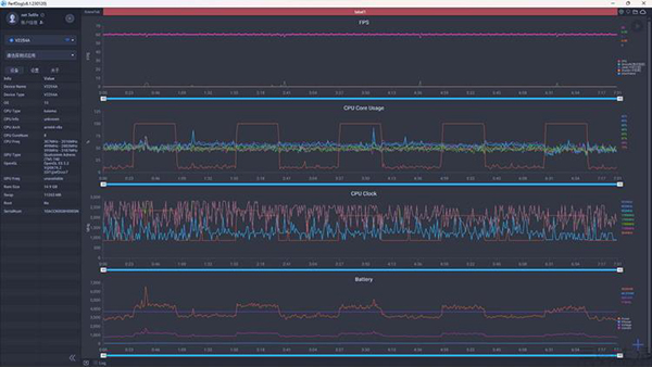 《王者榮耀》(插幀到120) 平均幀率60.2 平均功耗3652.2mW
