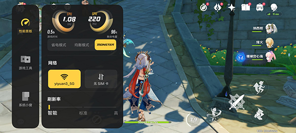 測試環(huán)節(jié)則是《原神》,測試室溫為室內(nèi)恒定15℃,測試模型為5分鐘的須彌主城高強(qiáng)度跑圖。并且開啟游戲性能面板中的MONSTER模式,GPU控制面板選擇均衡。