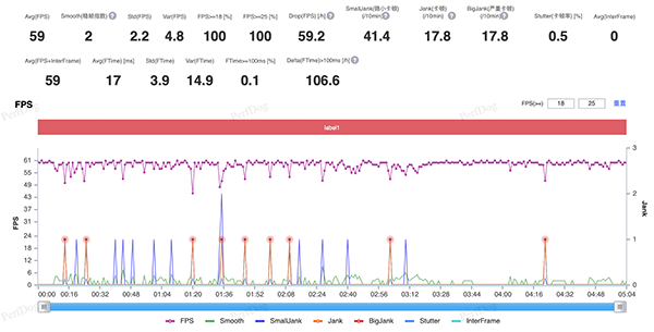 經(jīng)過實(shí)測可以看到,iQOO 11 Pro提供幾乎滿幀的平均幀率(59幀)和還不錯(cuò)的卡頓情況,其中每10分鐘的微小卡頓、卡頓和嚴(yán)重卡頓分別為41.4次、17.8次和17.8次。