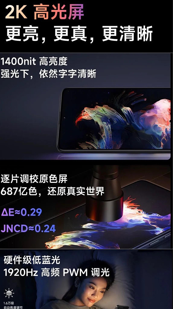 本次紅米K60 Pro采用了一塊國產(chǎn)2K屏幕,分辨率為3200*1440,采用的是類鉆排的排列方式。在觀感上,可視化角度和峰值亮度等方面雖然略微遜色于三星的屏幕,但是顯示效果細(xì)膩程度方面做的確實(shí)不錯(cuò),并且還支持1920Hz的高頻PWM調(diào)光,120Hz變速高刷,480Hz觸控采樣率,總體來說這塊屏幕的素質(zhì)真的不錯(cuò)。
