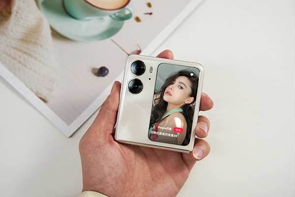 如果說左右折疊的折疊屏手機(jī)最重要的賣點(diǎn)是展開獲取更大的屏幕尺寸,那么豎向折疊屏手機(jī)的核心要素其實(shí)是如何豐富更多的外屏應(yīng)用,讓用戶可以在許多日常生活場(chǎng)景中不展開屏幕,直接通過外屏處理一些事務(wù),而OPPO顯然也明白這其中的奧義,盡管Find N2 Flip是他們首款豎向折疊屏手機(jī),但外屏尺寸就讓人相當(dāng)驚艷,這是一塊3.26英寸的外屏,是目前豎向折疊屏手機(jī)里尺寸最大的外屏了,能夠顯示的內(nèi)容自然也要更多一些,屏幕的峰值亮度是1600nit。