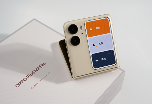 OPPO Find N2 Flip上面最大的賣點,應該要屬于這個3.26英寸、17:9比例的大外屏,這塊外屏的尺寸比三星Z Flip4上的外屏尺寸還要大,并且由于OPPO上的這塊外屏是跟正常直板手機一樣的豎向比例,因此在進行內外屏的切換時,會更加舒服一些。